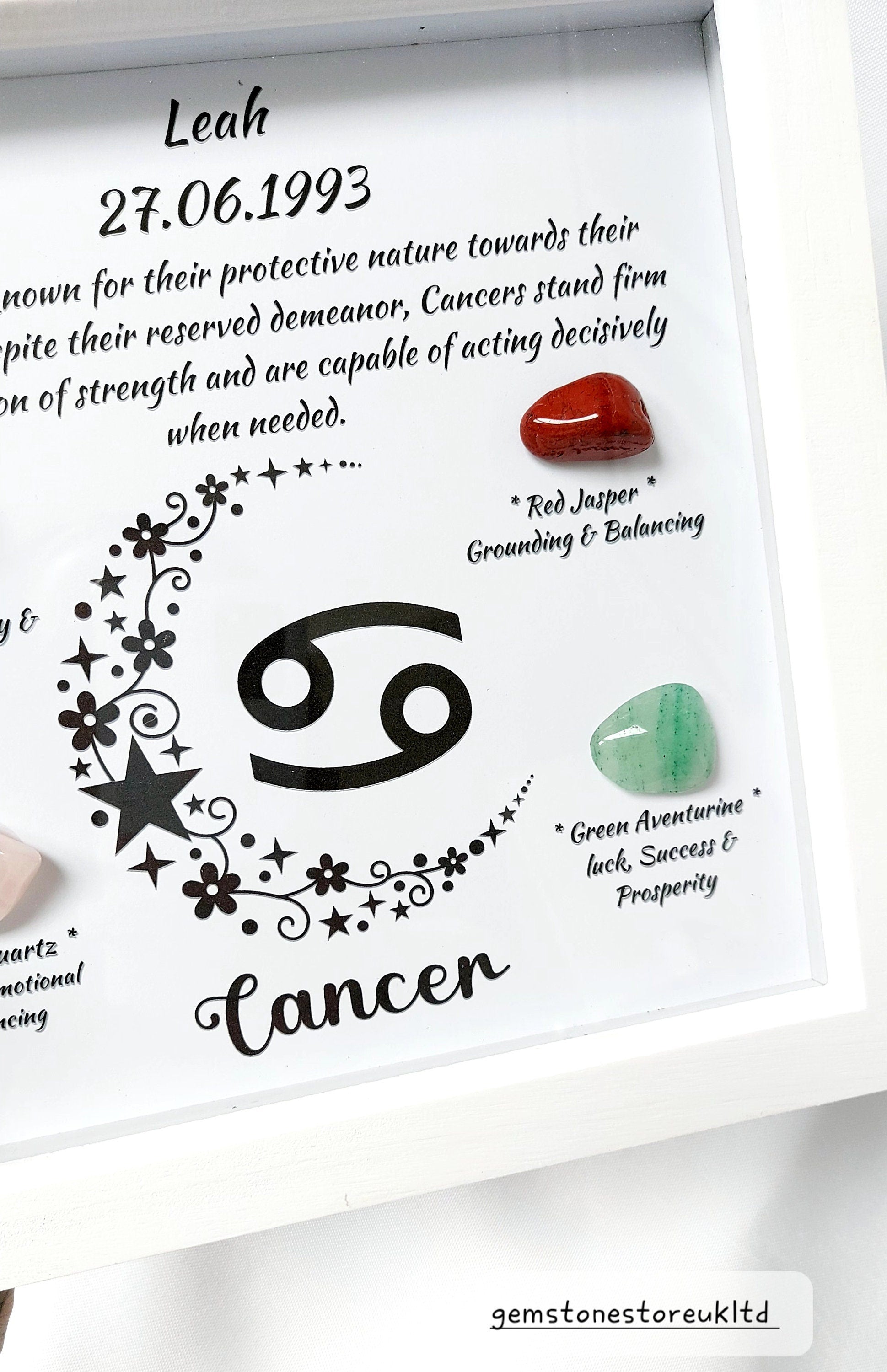 Listing is for one Handcrafted Cancer Zodiac Crystal Picture. This picture is personalised so just leave the name and date of birth of the recipient in the personalisation box.