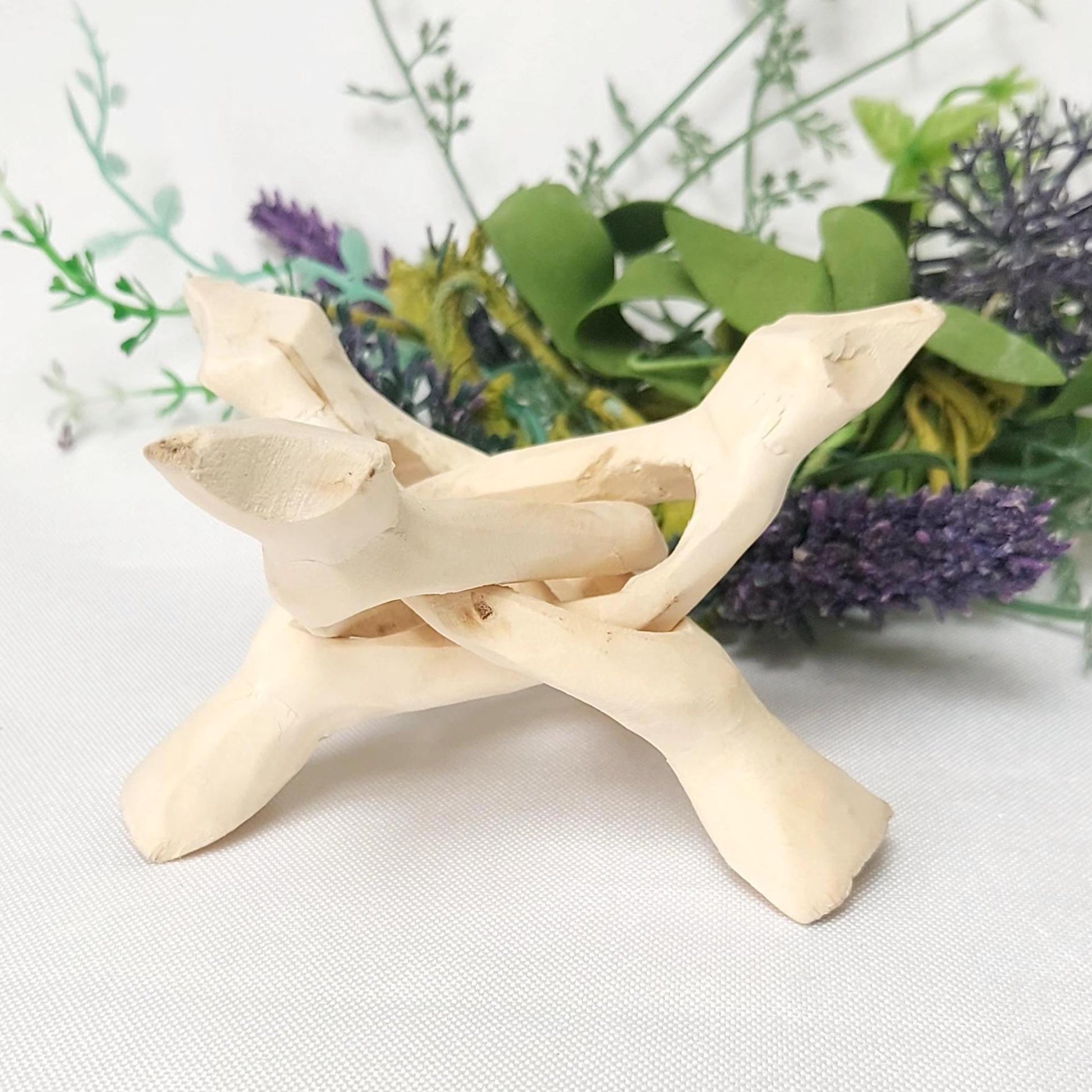 Kit Includes: 1x 12cm natural abalone shell (heat-resistant, perfect for catching ash) 1x Natural Wood Tripod Stand, each stand is about 4 inches when closed. When the stand is open, the bottom legs measure approx approx 3 inches wide and the tops legs are approx 4 inches wide.
